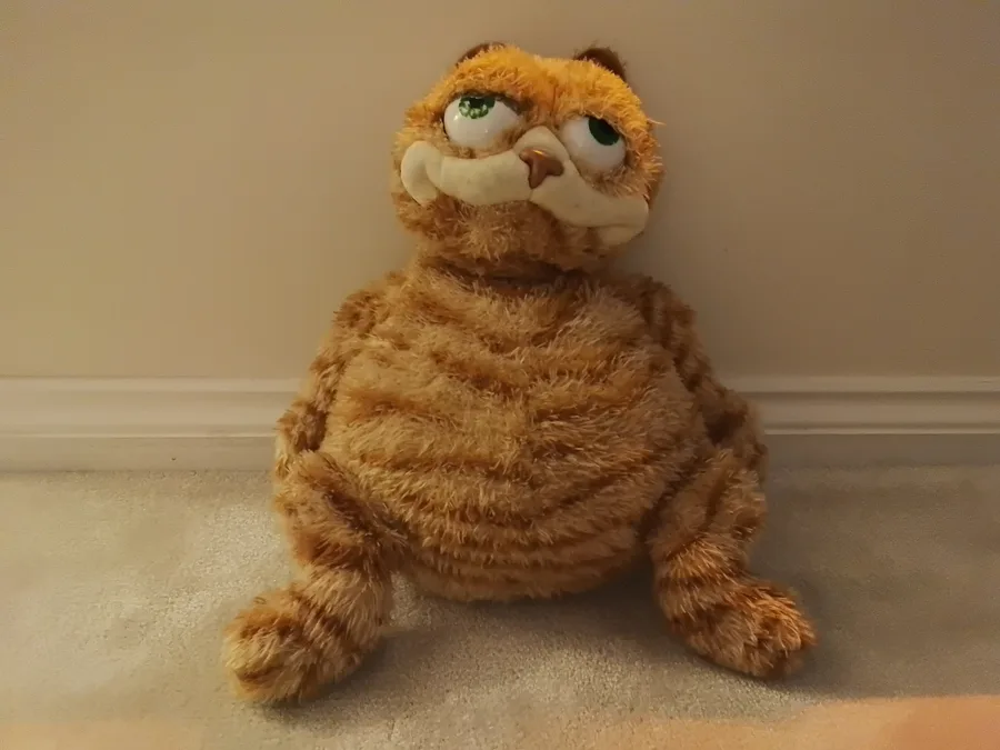 Today I'd like to share one of the weirder plushies I Own. This is a bootleg Garfeild plush I Got in about 2023. Admire him
