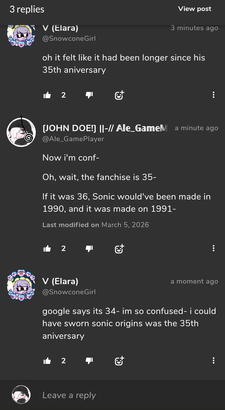 Bro, Sonic franchise is 34, 35 or 36 years old??