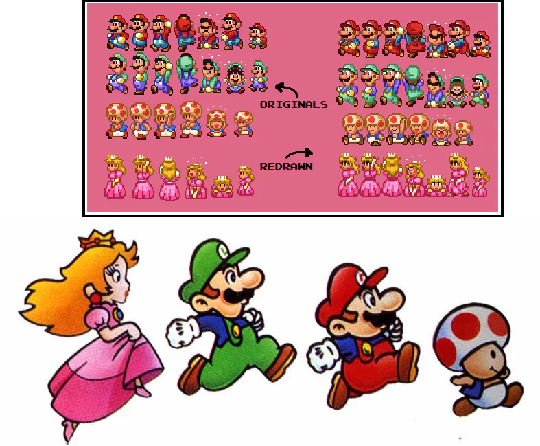 And for the luigi horror game I'll use these sprites from a hackroom for smb2 all stars , I'm gonna use the mario sprites ( upd I'm not gonna use the toad sprites )