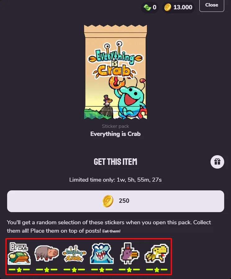 Good morning Everyone, just realized that I mastered all the stickers from Everything is Crab, very cool sticker pack