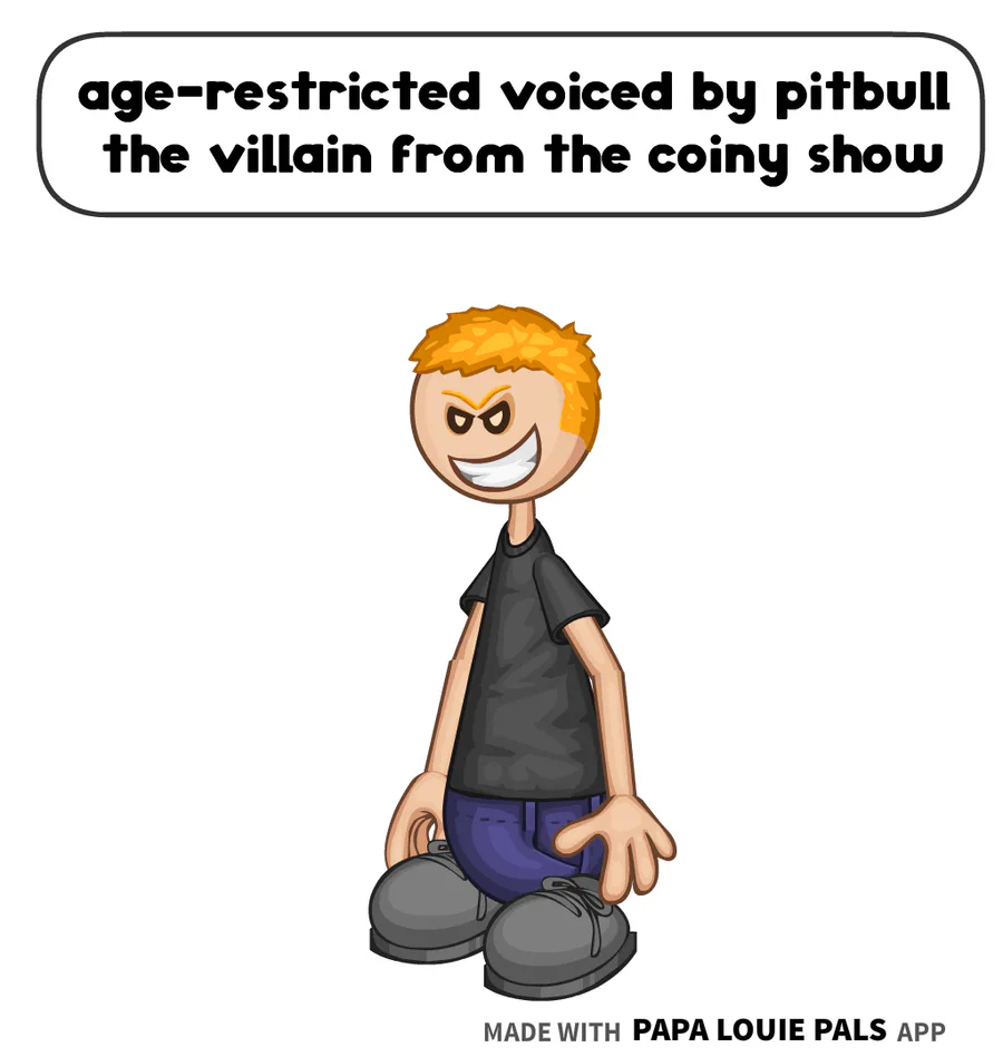 age-restricted is voiced by pitbull the villain from the coiny show
