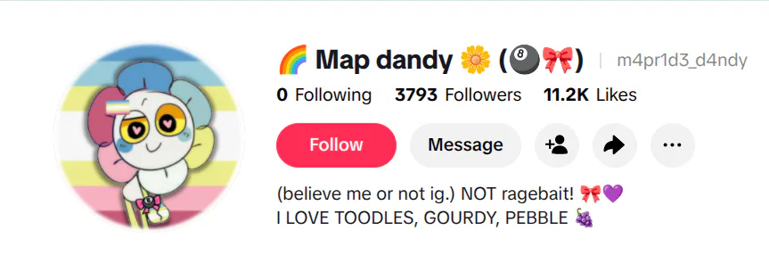 i am gonna hunt down this person, if you dont know, this is a dandy's world person who's on tiktok, sorry if it is not gamejolt tho.
