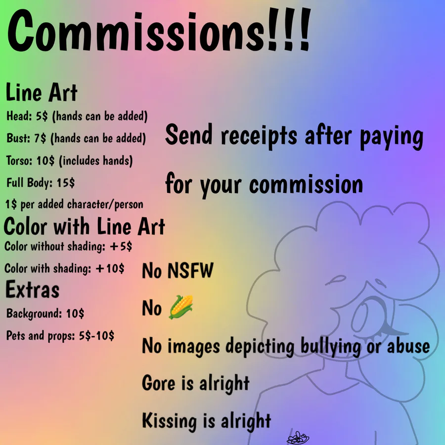 Talked to some people and lowered my commission prices! So here they are!!!