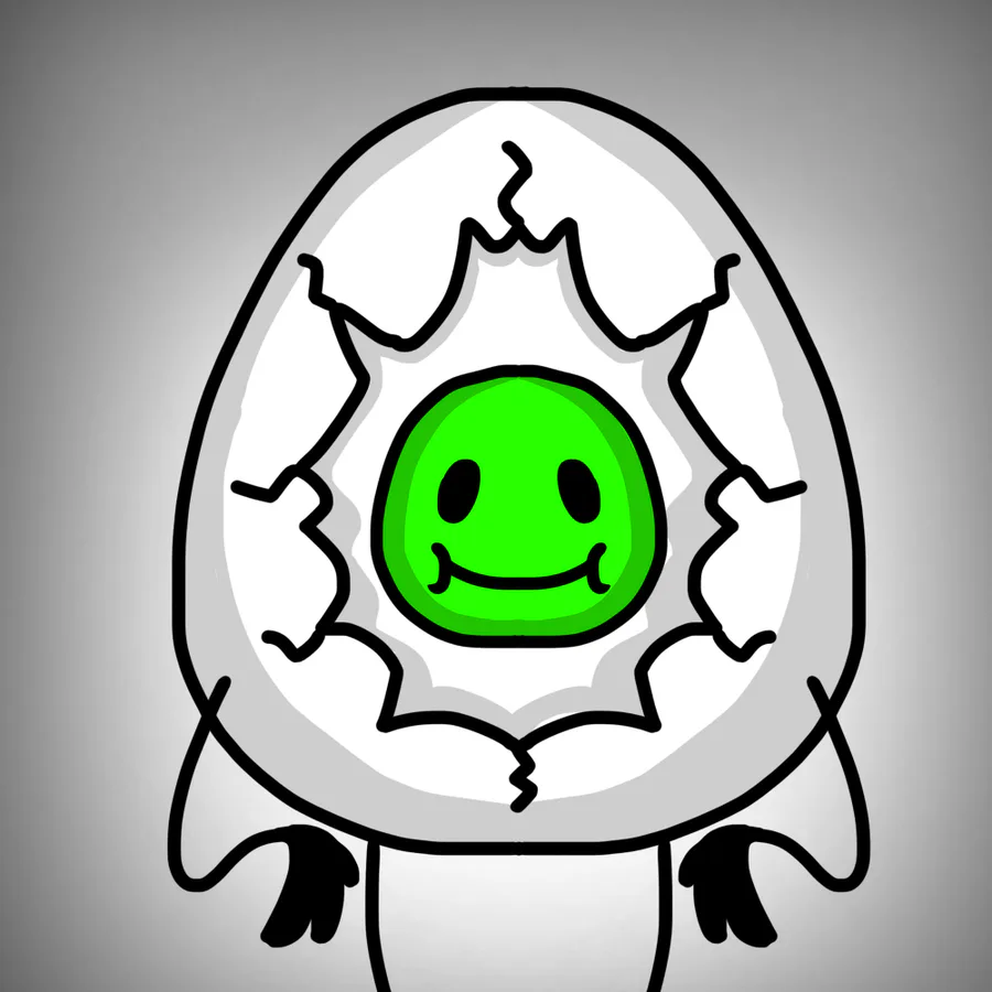 Egg surprised cracked open inside yolk face