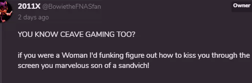 seeing this joke comment I made be screenshotted with friggin' 2011X PFP AND Name is the most comical thing I've looked at today. XD
