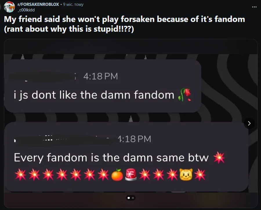 Respect their choice to not want to play Forsaken even tho you don't agree with their reason? ❌