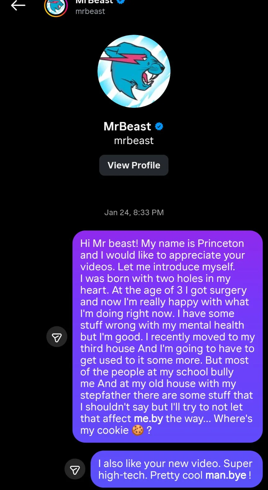 I texted Mr beast