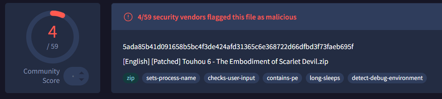 man I sure would like to get into touhou! the virus total jumpscare in question:
