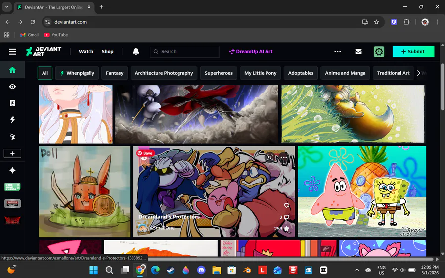 So I made a DeviantArt account and turned on safe mode, lets hope fetish stuff doesn't appear to me :3