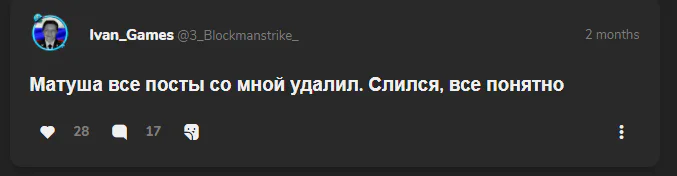 Помню как однажды Матуша хотел добавить моему первому аккаунту в друзьях (т.е. когда я ещё был в нём до его потери) и я тупо решил отклонить его
