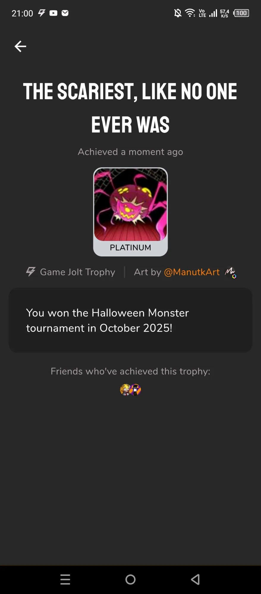 *exetior laugh* hooray I'm got trophy that was easy and now welcome to your nightmare Halloween Monster
