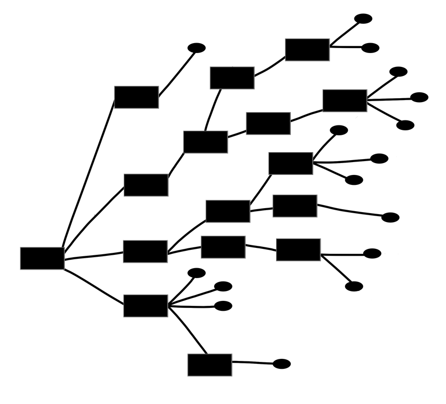 Прямоугольники - играбельные уровни, овалы же - концовки. В демо отражены 4 нижних пути.