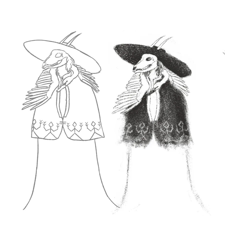This is a character design for my game. I have an in-depth piece written about the inspirations of the piece on my website: https://www.mrshumancar.net/post/devlog-1-god-of-death-character…