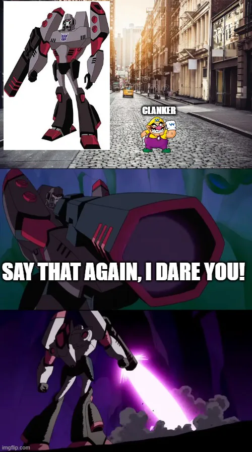 Wario dies after he calls Megatron a clanker.