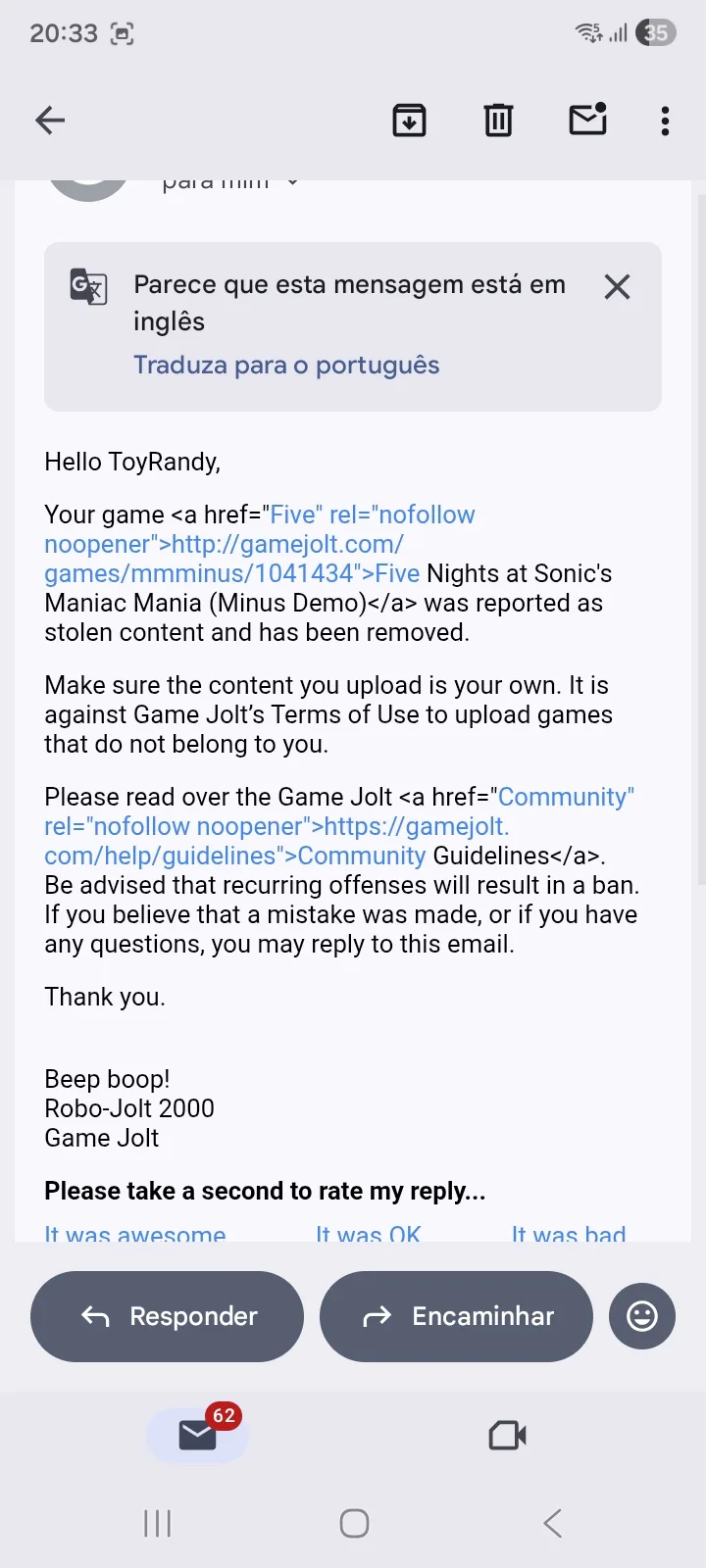 Gamejolt,WHAT THE FUCK??? I LITERALLY DID NOTHING AND YOU SIMPLY BAN ME???? BRO I NEVER CLAIMED OTHER PEOPLE WORK,THAT IS FUCKING WRONG,GAMEJOLT DO YOU HAVE DEMENTIA????
