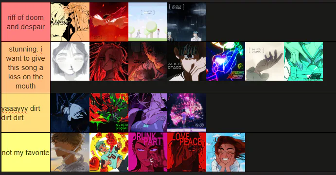 alien stage song ranking ok? im not putting any of the covers except hyuluka karma because hyuluka karma is heavenly and it deserves to be there