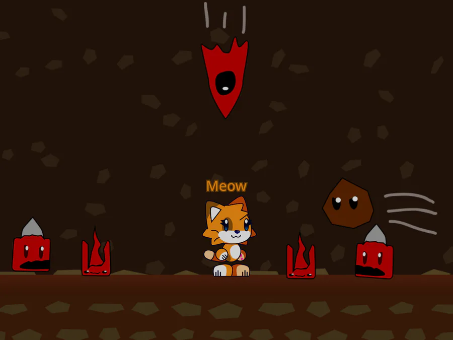 "Meow" (I remember doing this a long time ago, maybe its time to revive this stupid little concept i once did about Pedro's game: "Scratchy Adventure Reboot")
