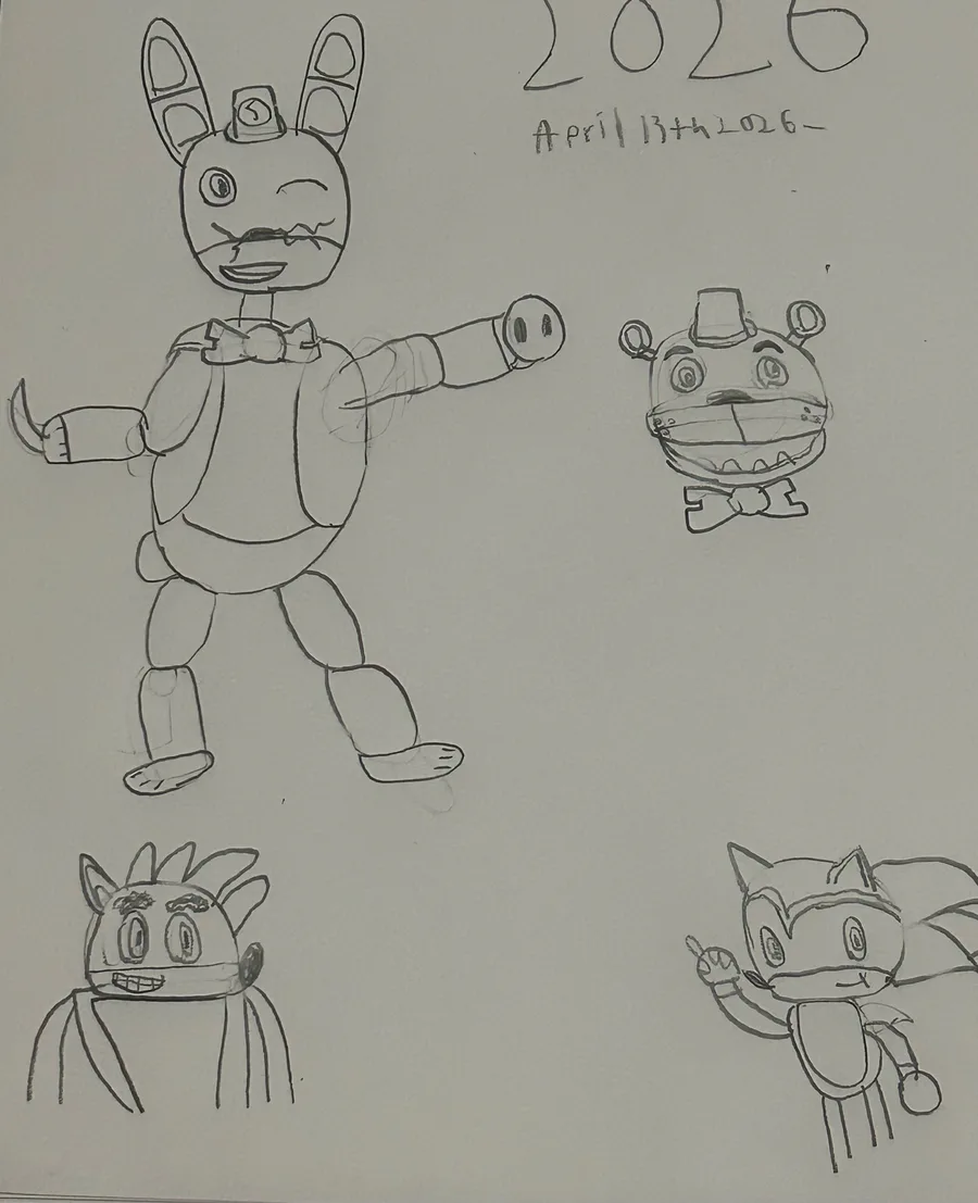 Here’s some sketches for my sona, Freddy, Sonic & Crash.