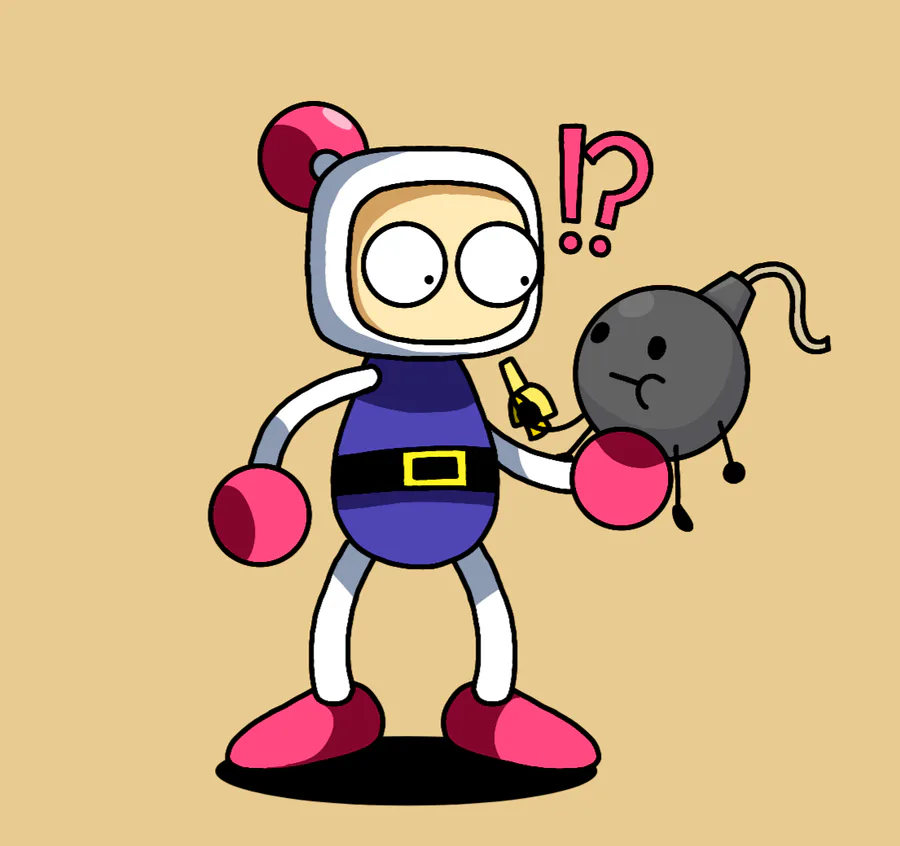 Just a drawing of bomberman holding...a living bomb???