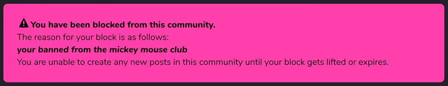 o no im baned fomr the mickey nouse copb
