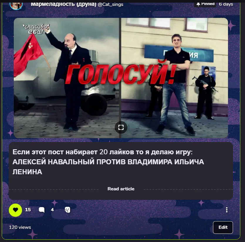 Если этот пост набирает 20 лайков то я делаю игру: АЛЕКСЕЙ НАВАЛЬНЫЙ ПРОТИВ ВЛАДИМИРА ИЛЬИЧА ЛЕНИНА