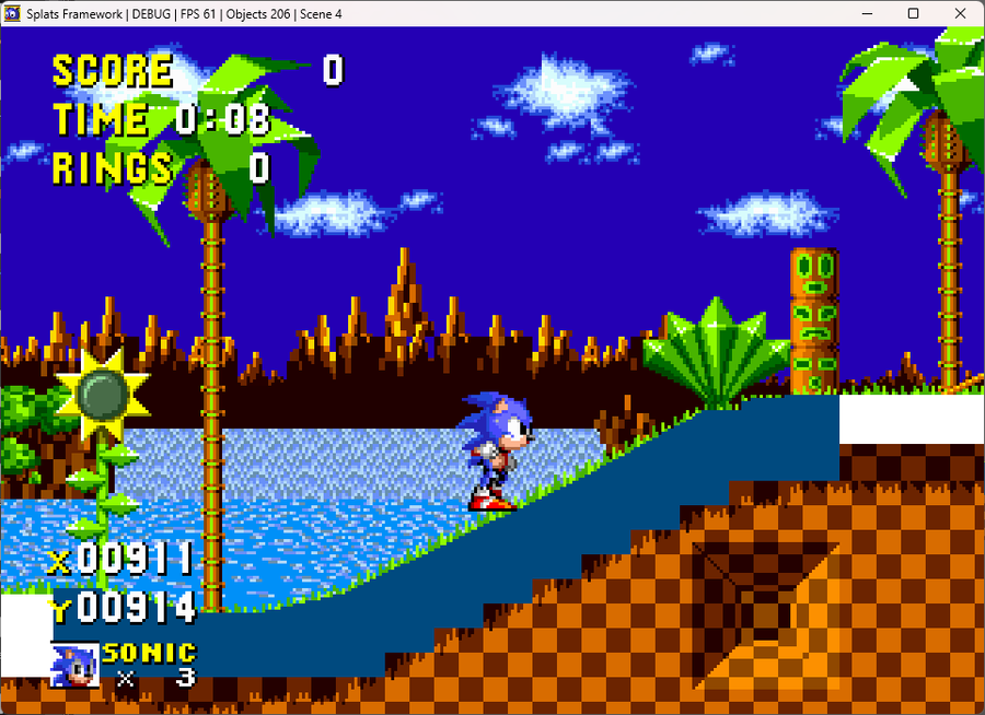 Engine update. The engine code that I was using until recently was starting to get pretty weird, so I moved to a framework that I'm currently developing. In addition to that, I made some changes to Sonic's abilities.