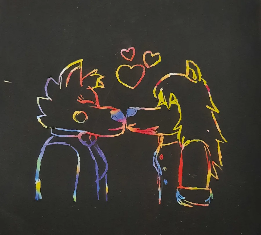 While packing up some stuff I found old scratch papers so I drew @VeryPosh2005 and me kissing <3