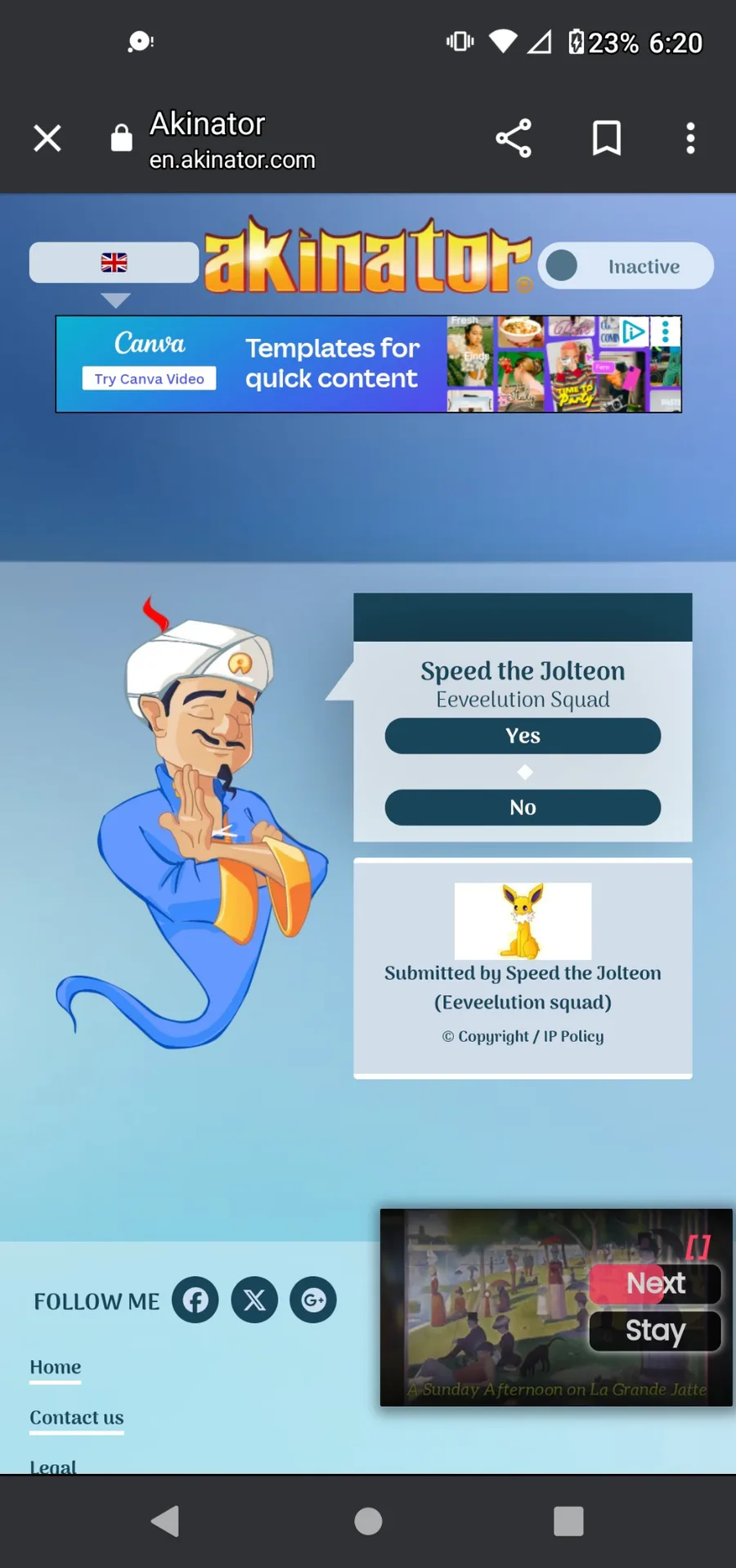He guessed me! (And yes he also done the right answer) What other Eeveelution squad characters should I make him guess? I've already tried fluffy but he kept on guessing wrong