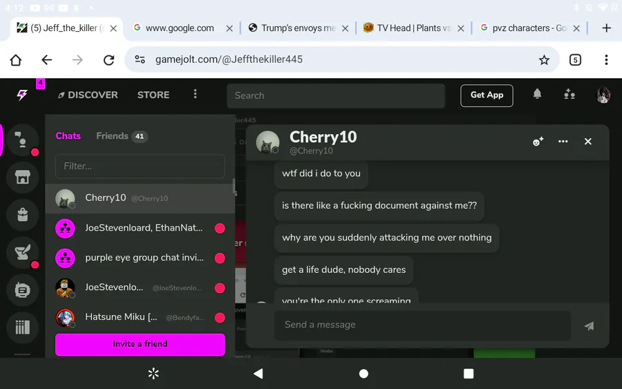and I hope this dude goes to hell because the chat logs I'm showing right now are very disgusting