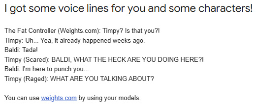 I got on gmail.com that you can voice line it, just like Vissy (https://youtube.com/channel/UClg2EtKU3GFKhquOdJnmZMQ).