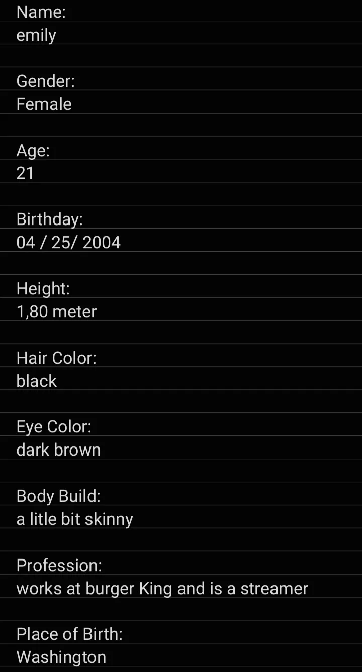 Here's Emily's sheet I know it's ugly and not with story but I'll do that later (probably)