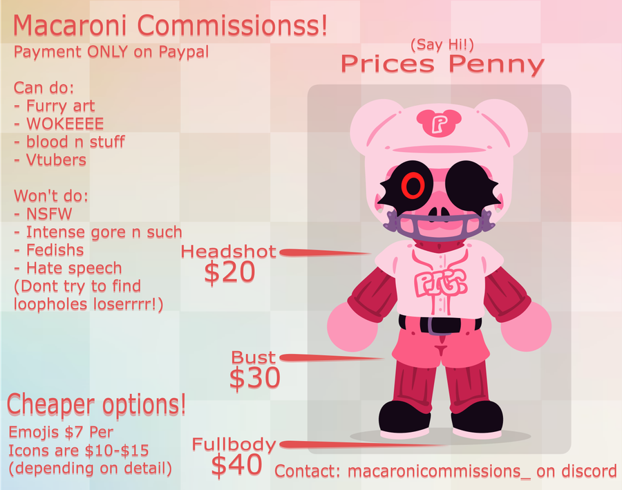 Welcome to my page, I'm Macaroni; I'm a commission artist, game developer and Gamejolt creator!
