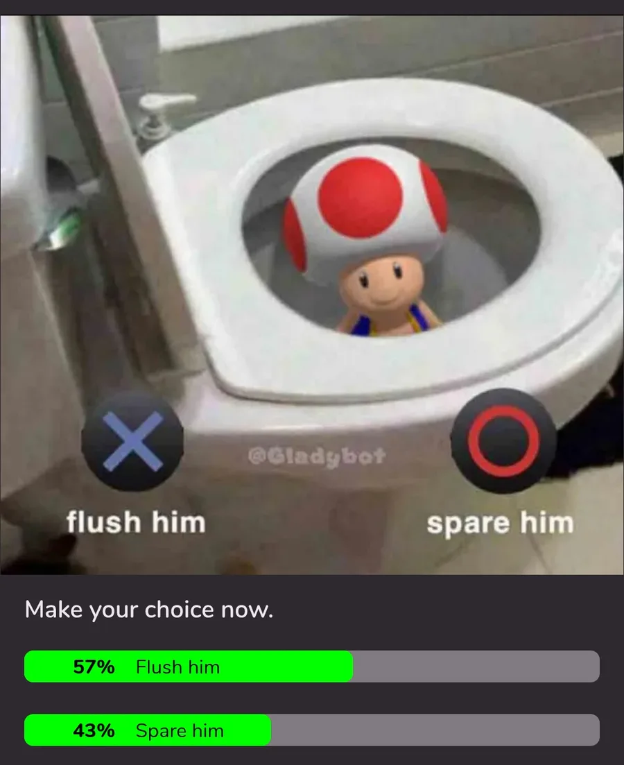 And for the 57% that wanted to flush him. There is something seriously wrong with you.