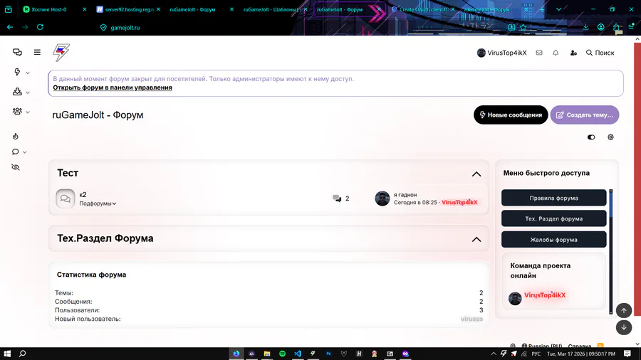 делаю форум день 1 домен уже есть, но вы ща не зайдете на форум, я закрыл его