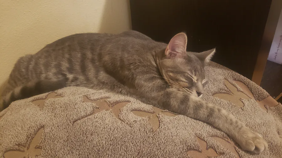 the goober is sleeping on my blanket