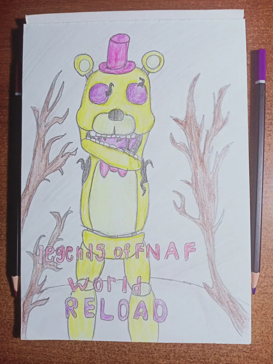 это фан арт по игре FNaF World: Reload выполненый в стиле обложки книги