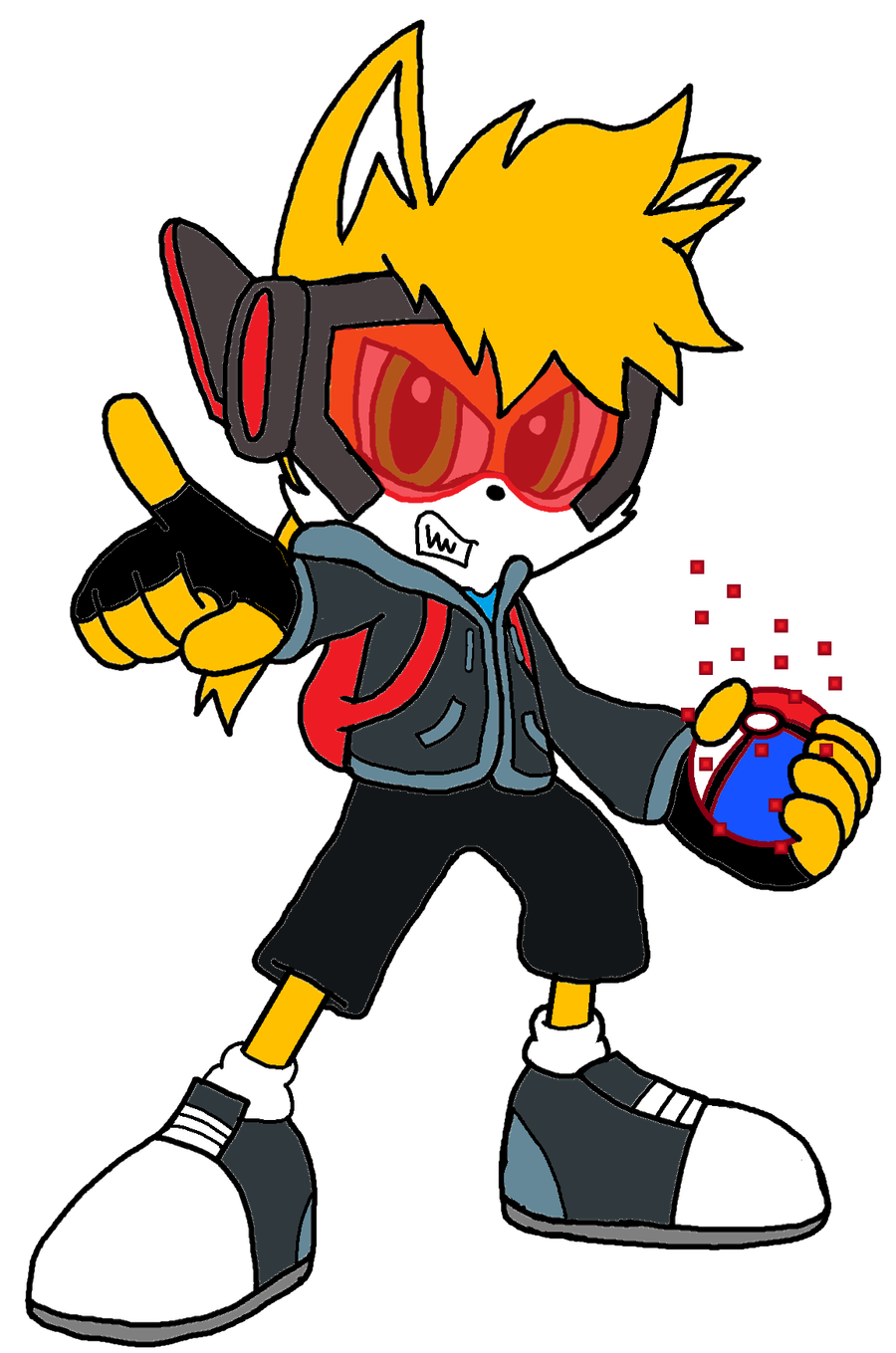 Takeshi Ueda grew up in Sakurayama in the Jouto region of Japan. Frequently bullied at school and with no real control over his life, Takeshi retreated into one of his favorite computer games, Computer Monsters (or "Compumon" for short, which is essentially an in-universe version of Pokémon). There, he found solace as he could travel across the world to catch and train Compumon, becoming the very best like no one ever was. He even watches the anime, seeing an aspiring Compumon Trainer going on adventures with his friends. But the real world…? Well, let's just say there's no such thing as a Compumon Master. At first, he did his best to ignore the bullies, minding his own business… that is, until one day, they pushed him too far, prompting him to inadvertently activate his unique Video powers for the first time and accidentally unleash a giant, monstrous Compumon that violently attacked everyone around him. After the incident, Hexcorp Industries, led by the mysterious Neo, came to his house and took him in, promising he would be sent to a new school designed for people like him… different. It was a long ride from home, but what they really did was take him to a small island located in Sōkyō Bay in the Kantō region, which serves as a super-maximum security prison and black-site research facility; it's like Prison Island except it's designed exclusively for MetaMobians. Hexcorp calls it "Akuma Island". There, Neo hooked Takeshi up to some machines and took advantage of his powers to create holographic foes to teach other imprisoned MetaMobians how to fight and kill while taking steps to prevent Takeshi's hardlight constructs from saving him. One day, someone hacked into the security system, and one of the walls of the facility somehow exploded, allowing a small number of MetaMobians to escape Hexcorp's grasp; Takeshi was one of the lucky few, using this moment as a chance to finally really disappear so that no one could find him or hurt him ever again. But this was no time to celebrate his newfound freedom, because it wouldn't take long for him to notice Hexcorp Troopers hunting down all the suspected MetaMobians in Sōkyō. He thought about what Neo's gonna do to them, and it was then that he decided that someone had to stop him. If Spider-Wolf were to encounter him, he would face this Karmic Moment: Courage or Contempt?
