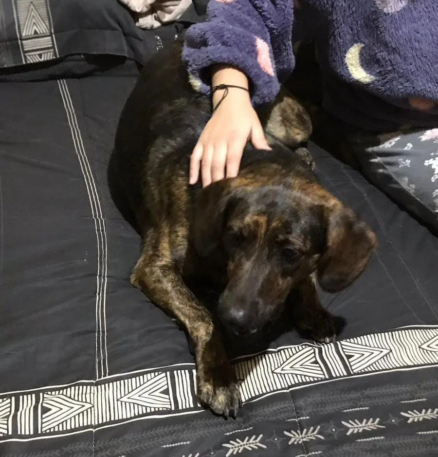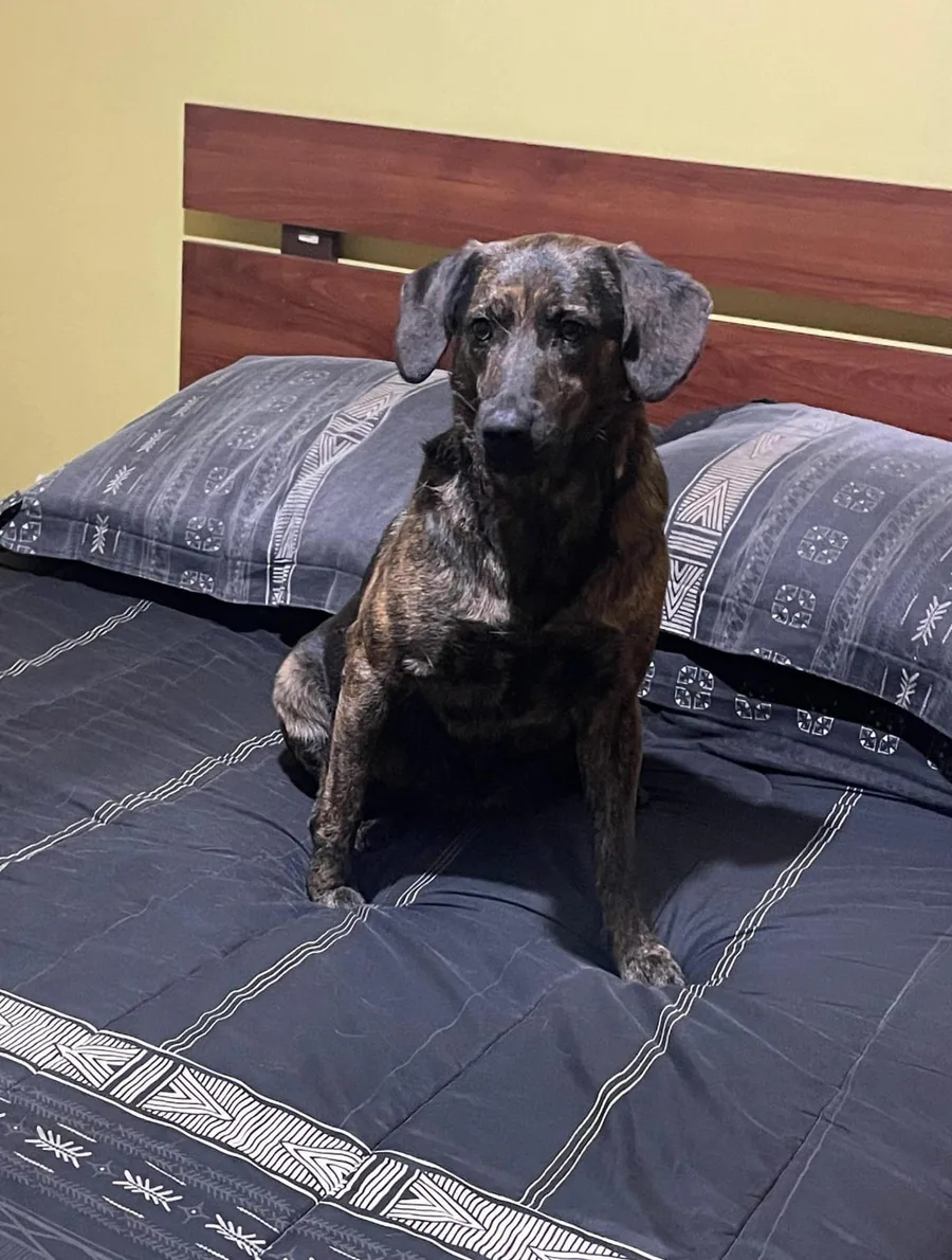 my dog went inside the house and quickly jumped on my stepdads bed (actually shared bed witj my mom but shhh) HSJSFBBSHAAJAJSJ