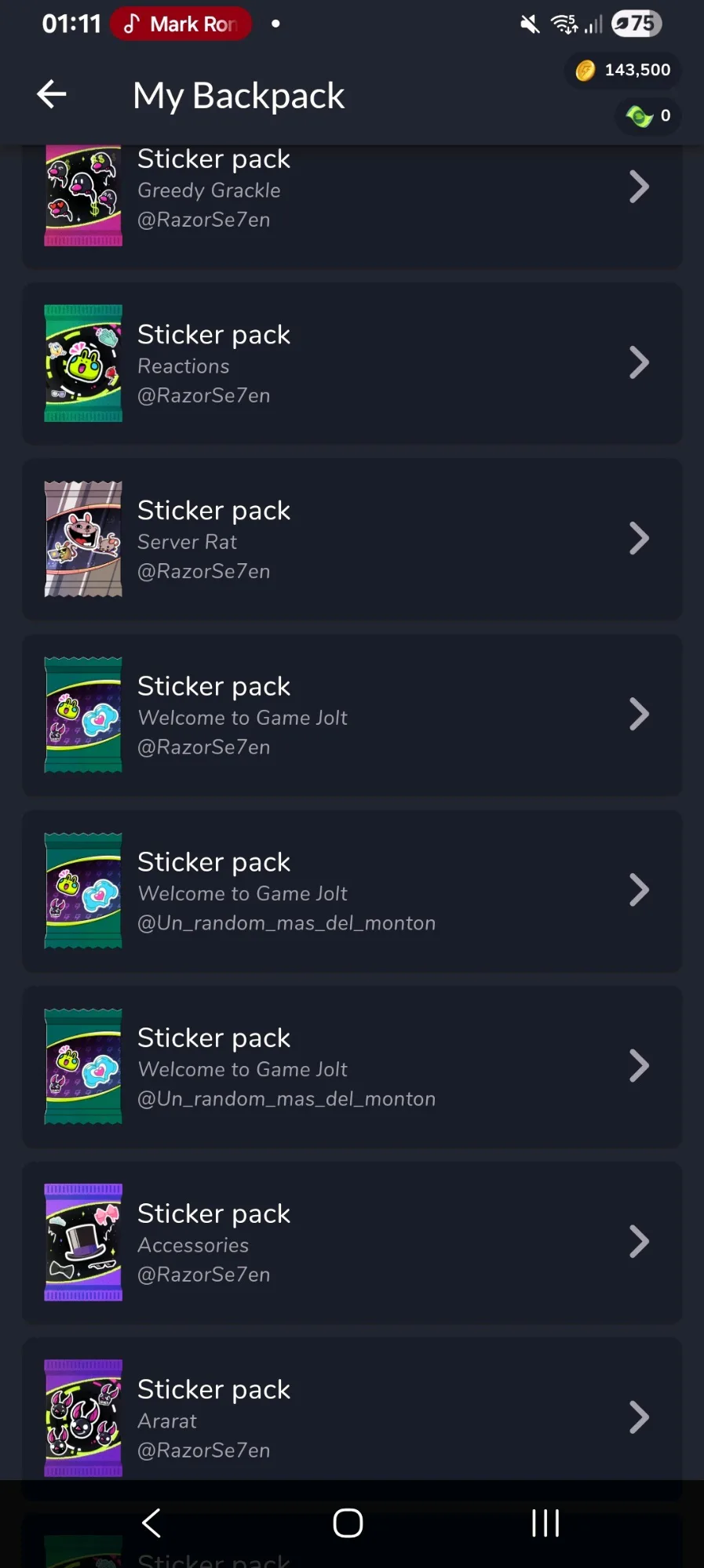 I know you sent me more packs of stickers, but I lost count of how many since I was offline for a week (maybe more)