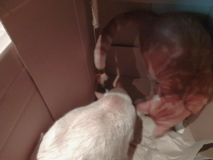 The cardboard house i made for my cats