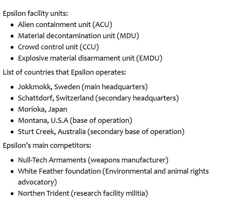 Added the facility units, the list of countries where it operates, the main competitors and the sectors to the lore