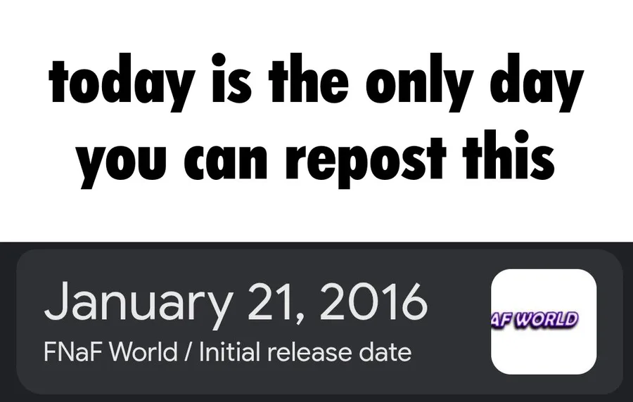 happy anniversary to fnaf world lol