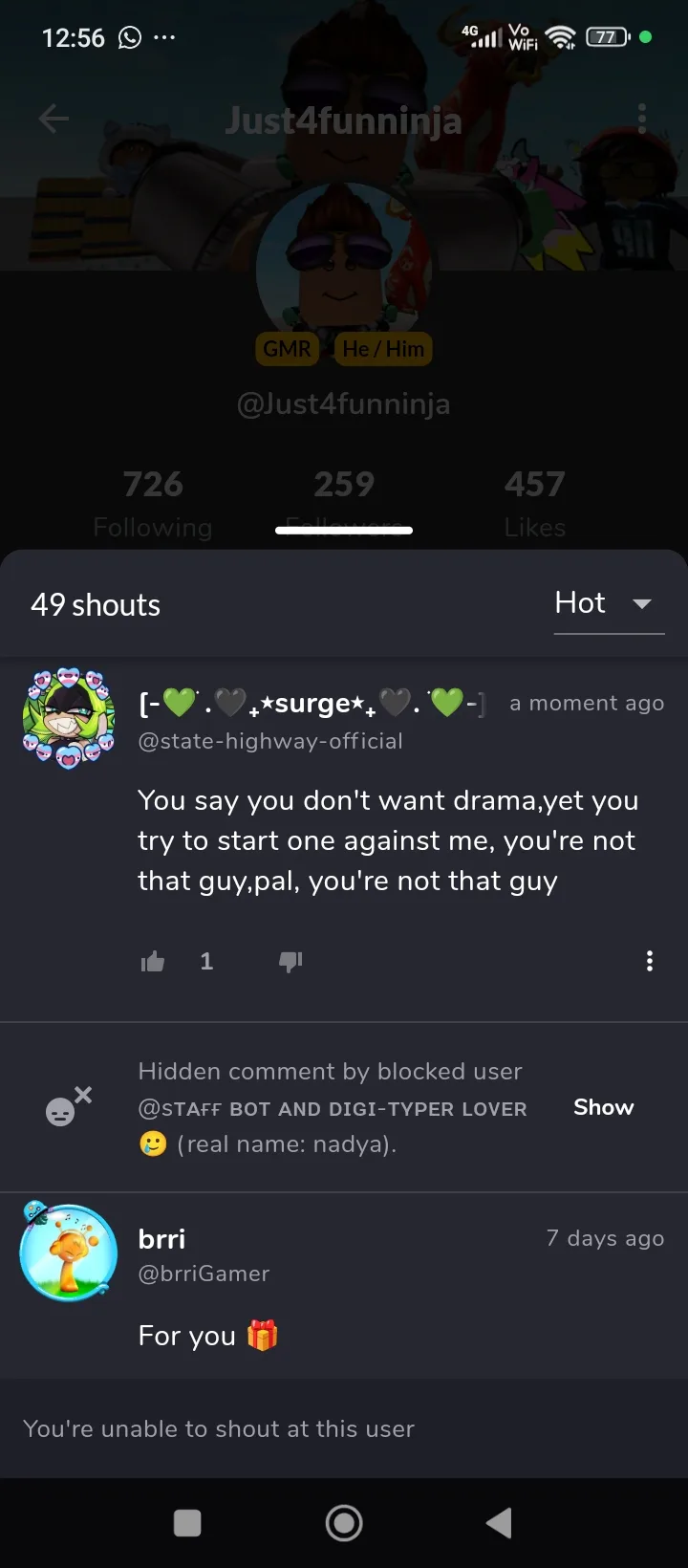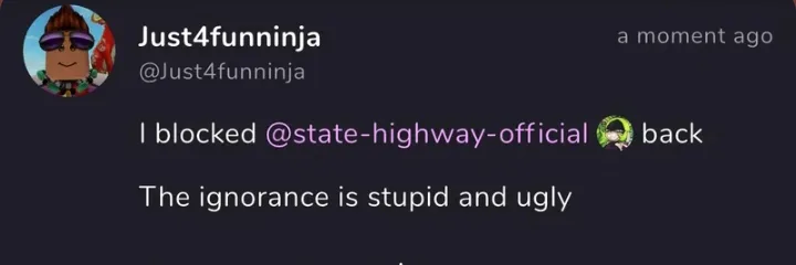 Well,well,well....the bitch blocked me... finally...I remember they where being Hella racist that's why I blocked them
