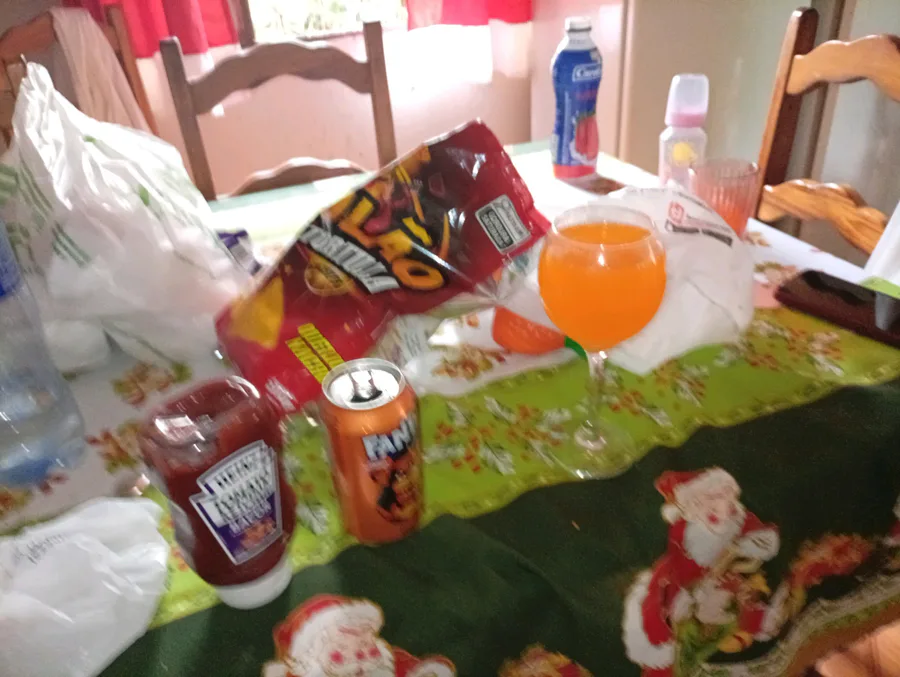 Freddy fazfanta on the wineglass and knockoff Doritos with ketchup