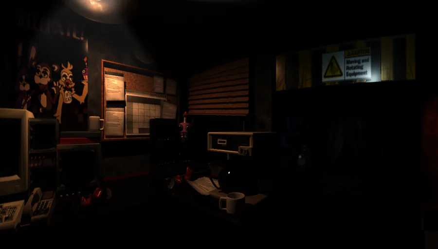 MAIN MENU - (WIP) I plan to add more animatronic characters on each night, along with more human characters/imagery occasionally appearing in the background.