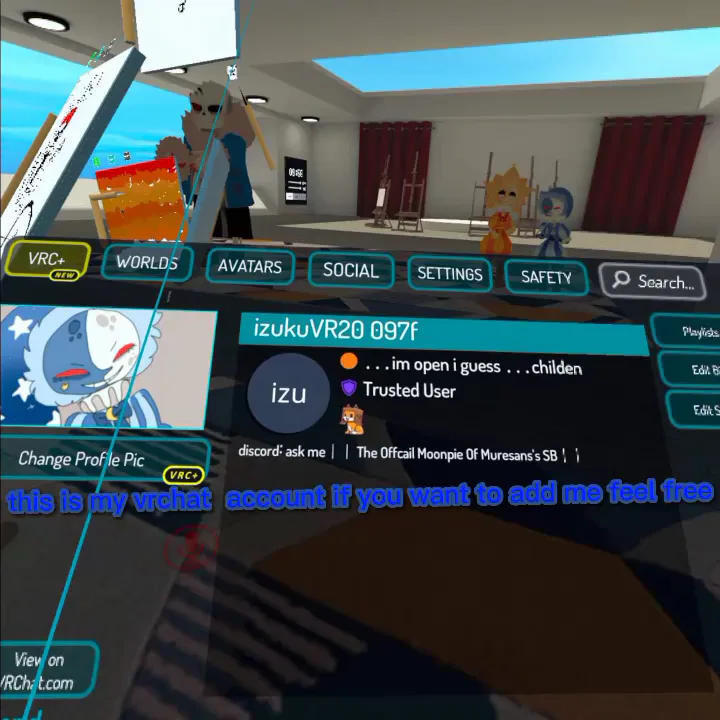This is my VRChat account so feel free to add me on vrchat