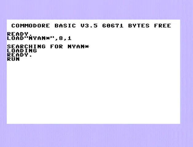 Nyancat, running natively on a commodore 16 computer with enhanced data and graphics