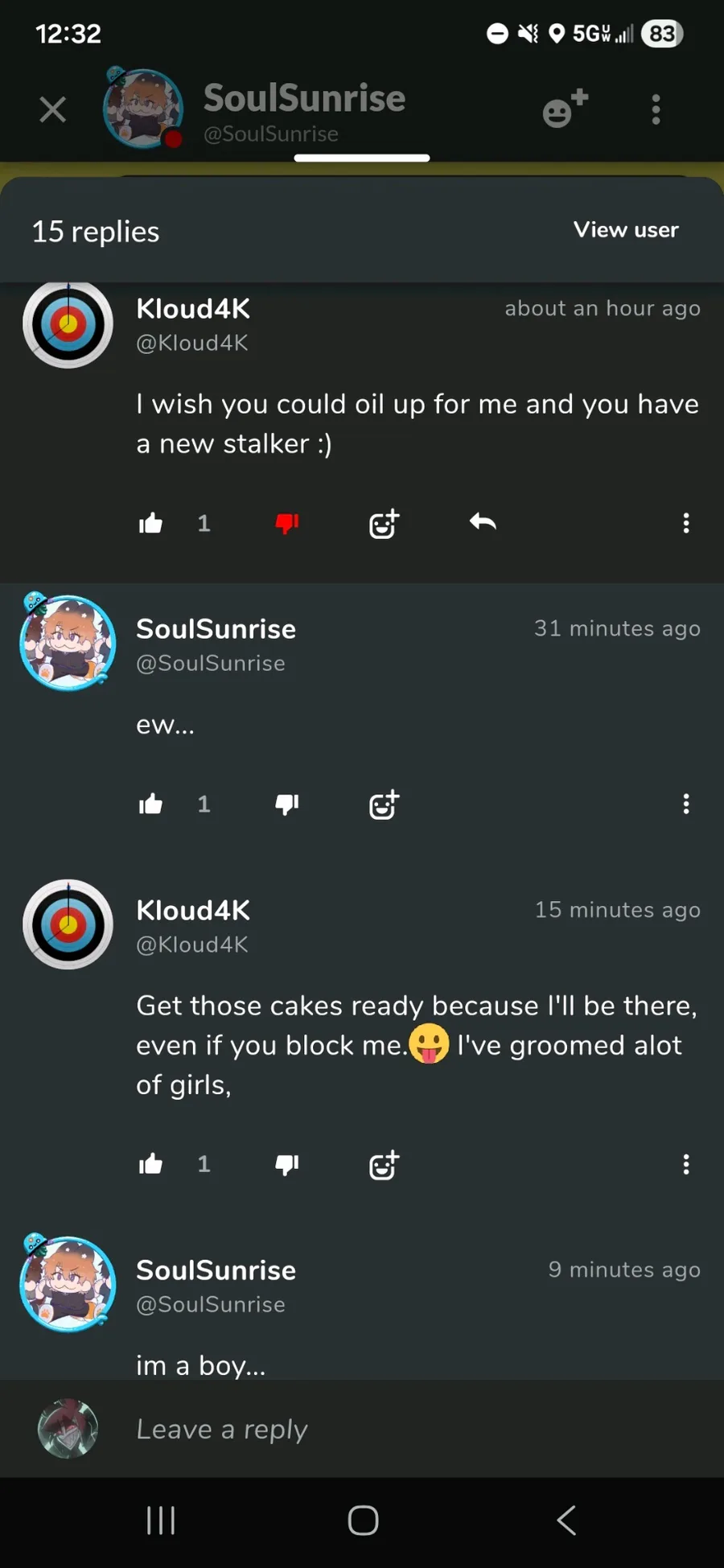 Report the user that's saying weird shit