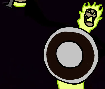 Yorick banging his shield
