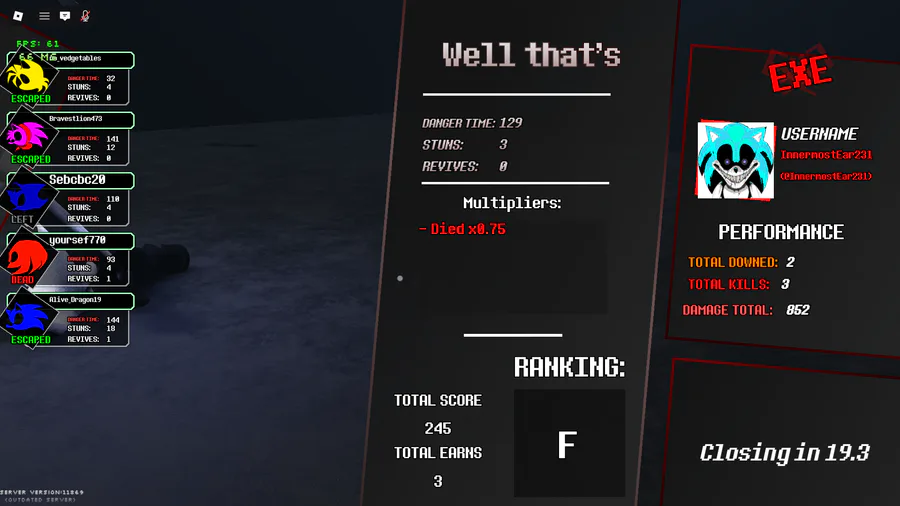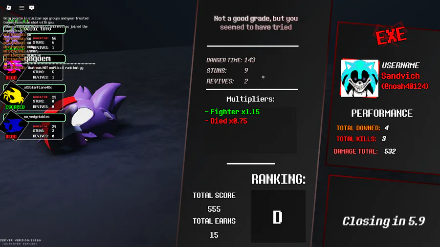 me when i spend the entire round helping the team, stunning, and peeling out the other survivors, resulting in blaze surviving aswell as reviving tails and sacrifice myself, which means I died, which means I get a bad rank (cuz thats totally fair)